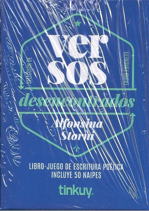 n libro con las sugerencias de juego y 50 naipes con versos escritos en ambos lados de la carta.